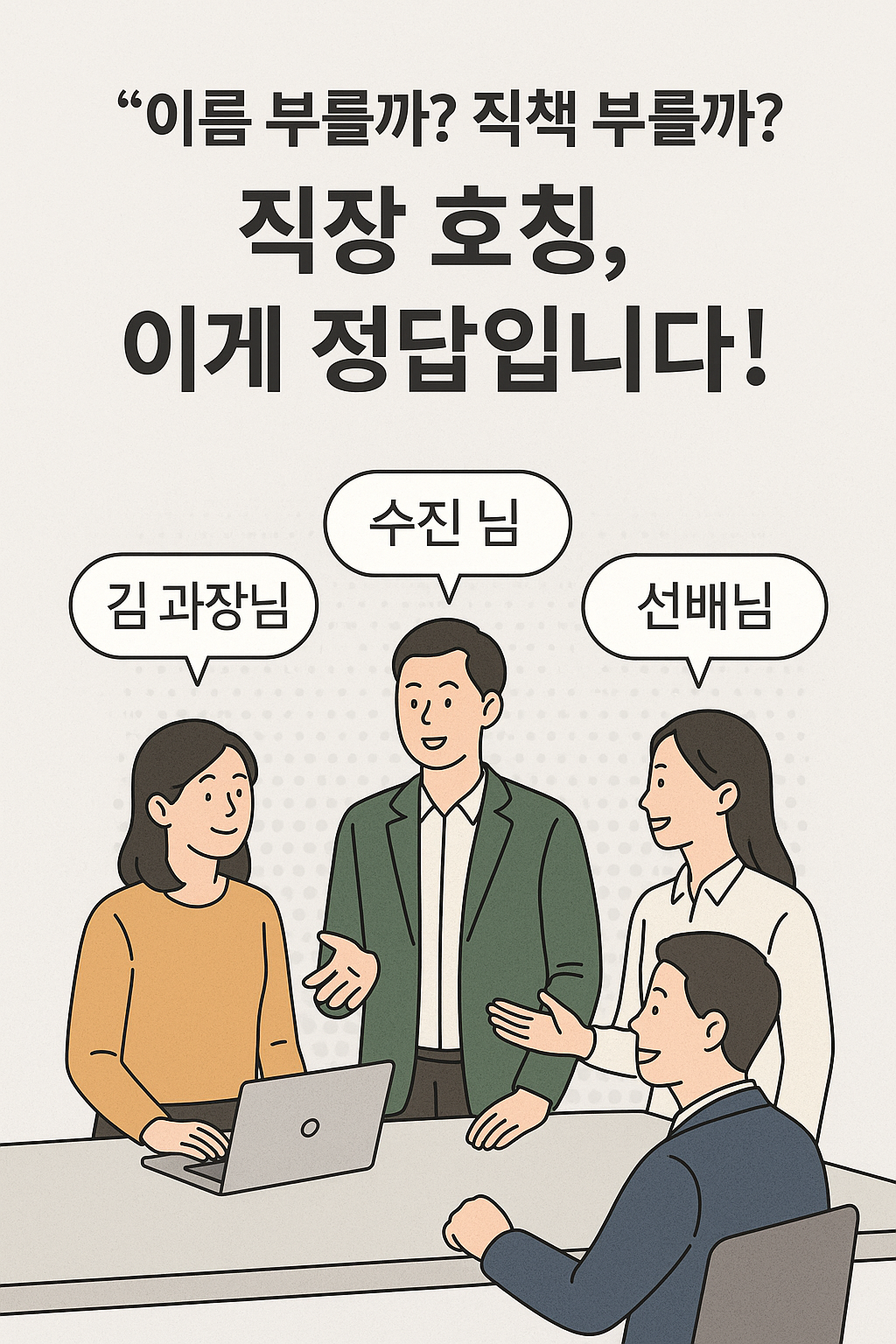 직장에서 사람을 부르는 호칭, 의외로 많은 직장인들이 가장 처음 고민하는 문제 중 하나입니다.