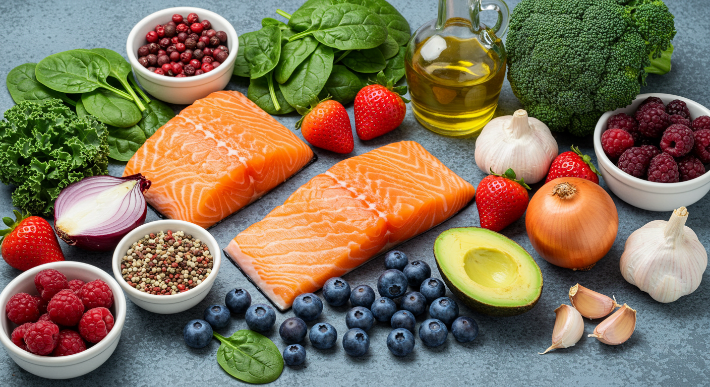 2. 혈전 예방 음식: 오메가-3가 풍부한 등푸른생선, 알리신이 많은 마늘과 양파, 비타민 K가 함유된 녹색 잎채소, 불포화지방산이 풍부한 견과류/씨앗류, 강력한 항산화 성분의 베리류 과일 등이 혈관 건강에 큰 도움을 줍니다.