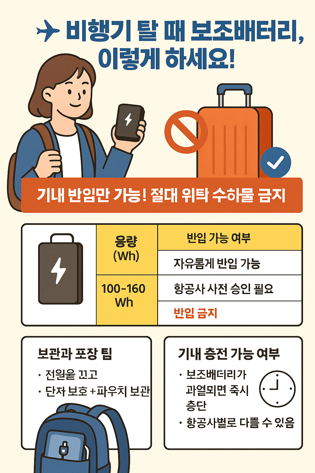 - 보조배터리는 반드시 기내 반입용 가방에!