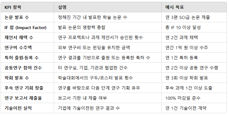 - 연구팀의 KPI도 설정해두면 협업 시 유용합니다.